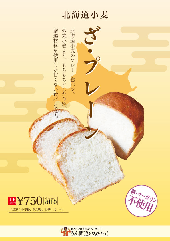 「うん間違いないっ!」は、世界中の誰もが食べた瞬間つい「うん間違いないっ!」と口に出してしまう程くちどけが際立つ食パンであることから命名しました。