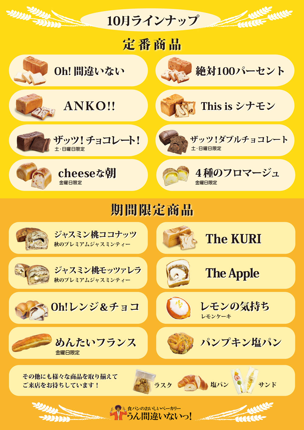いつも『うん間違いないっ!』をご愛顧頂き誠にありがとうございます。 10月の商品ラインナップです(…