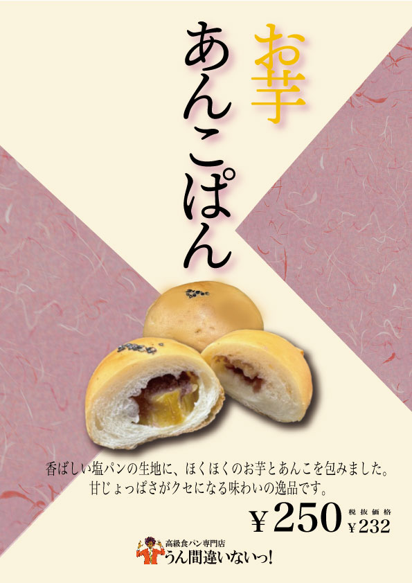 いつもうん間違いないっ!をご愛顧いただきありがとうございます。 本日11/2より新商品の『お芋あん…