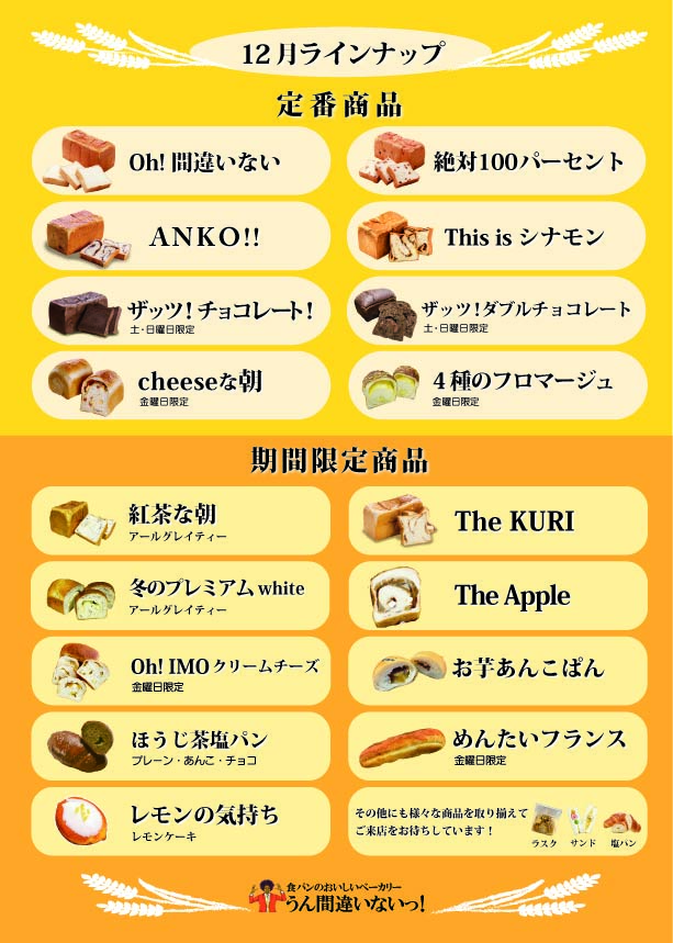 いつも『うん間違いないっ!』をご愛顧頂き誠にありがとうございます。 12月の商品ラインナップです(…